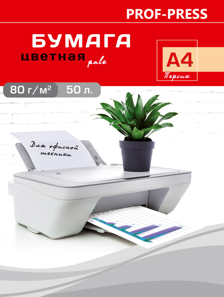 Бумага офисная цветная 50л А4 80г/м2 Пастель Персик Б-3566