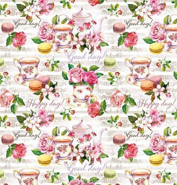 Упаковочная бумага Чаепитие с макарунс в рул 100х70 75194