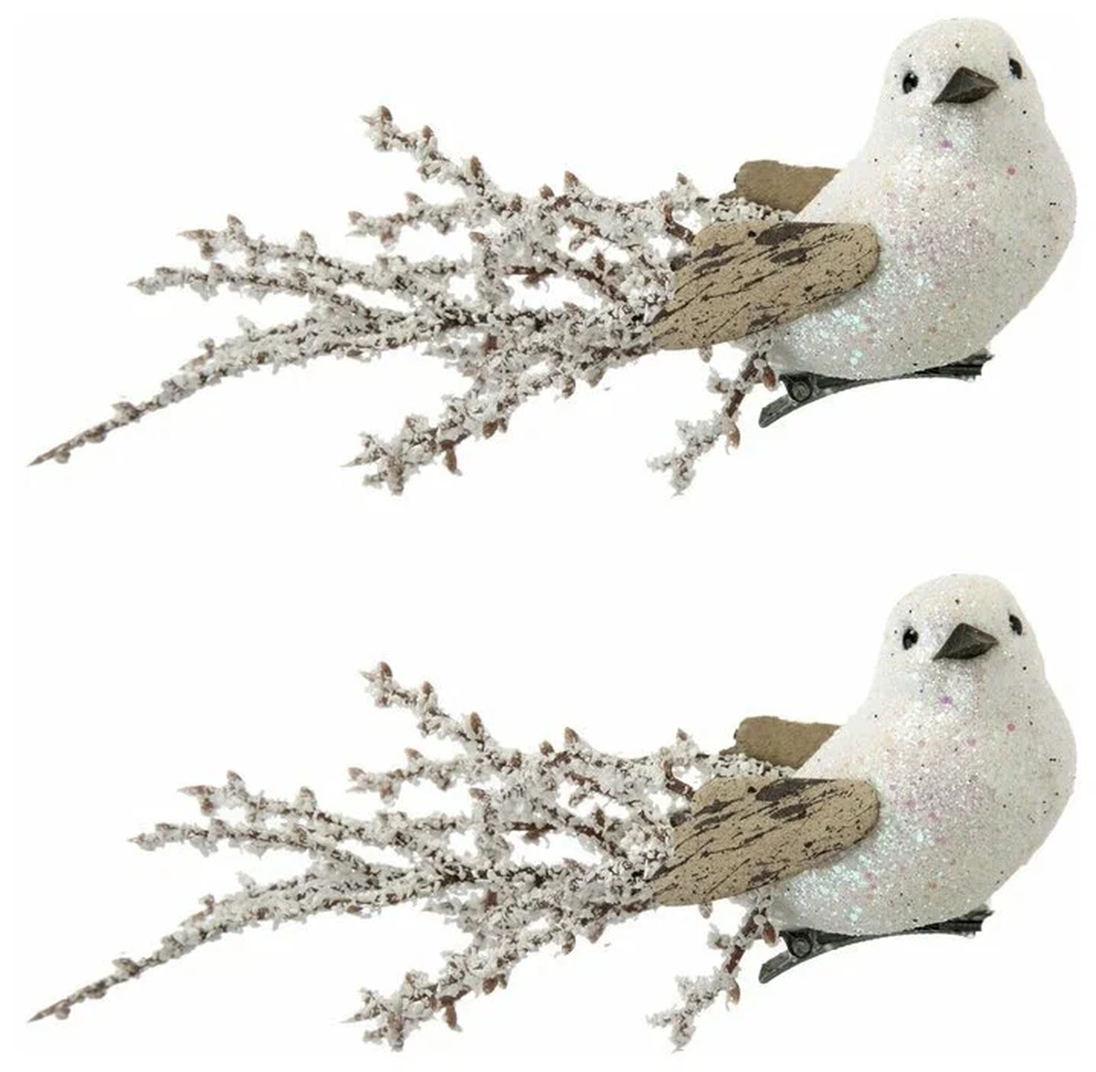 Елочное украшение Птички белые из ПВХ на клипсе из черного металла Набор из 2х шт 82244
