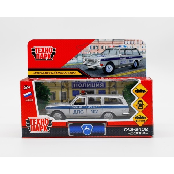 Модель Маш ГАЗ 2402 ВОЛГА ПОЛИЦИЯ 12 см двери багаж металл 2402-12POL-SR