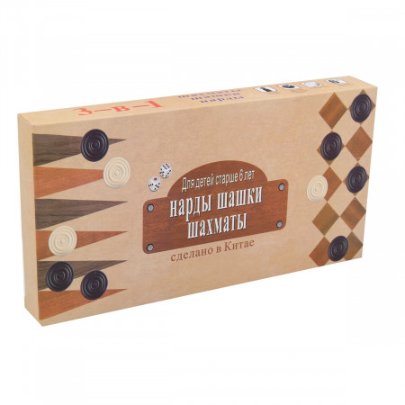 Игра Нарды шашки шахматы фигуры дерево в короб 3 в 1 дерево AN02593