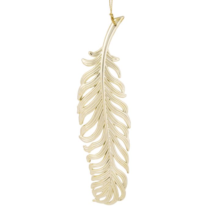 Новогоднее подвесное елочное украшение Перо золотое из полипропилена 18,5x4,5x0,2см 77963