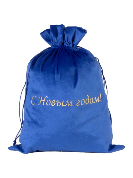 Мешочек из бархата Синий размер M с затяжным шнурком 86442