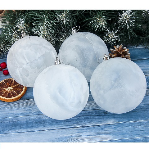 Набор шаров пластик 10см 4шт Туман Белый 1307148