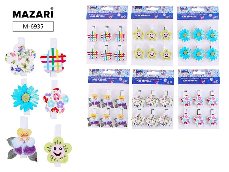 Прищепки декор деревянные CUTE FLOWERS 6шт M-6935