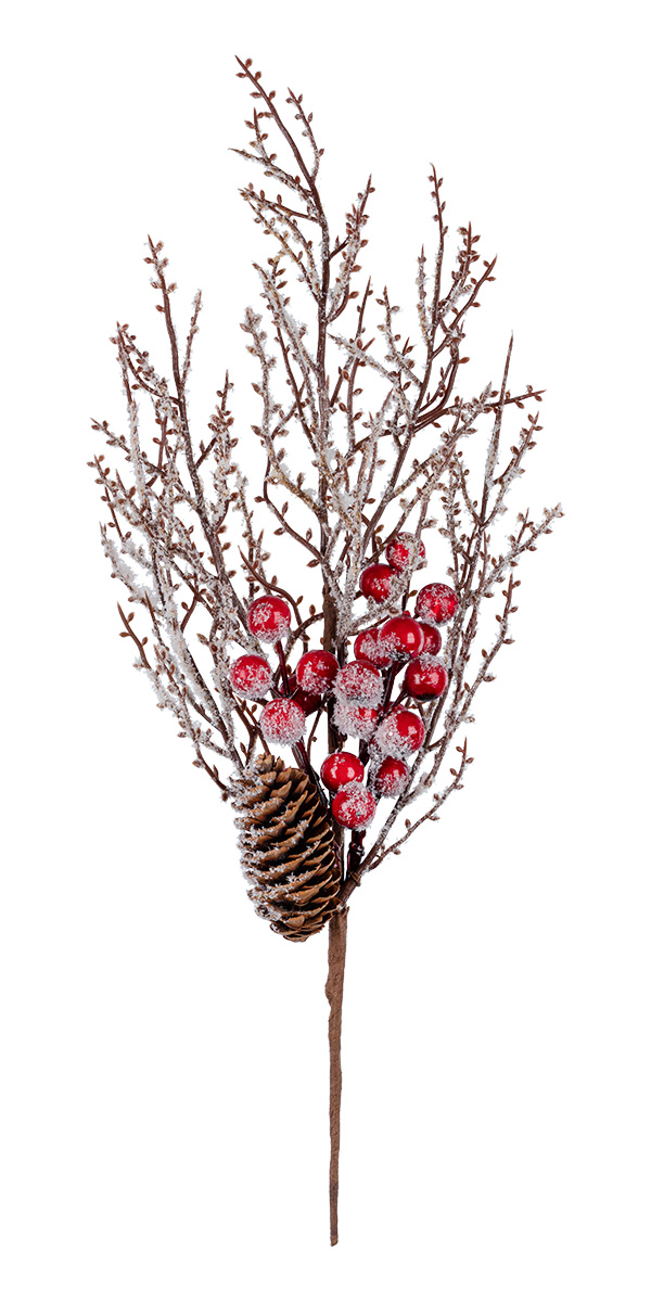 Декор элементы 1шт 01 Веточка с шишкой и ягодами 39см Вlumentag VDD-81