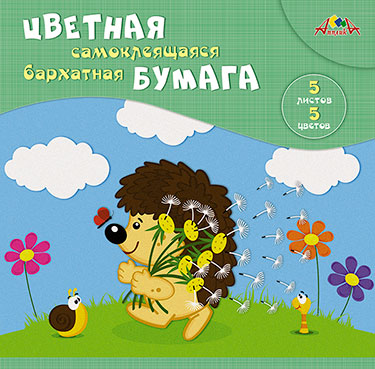 Бумага цв 5л 5цв А5 Ежик Бархатная самокл С0350-04