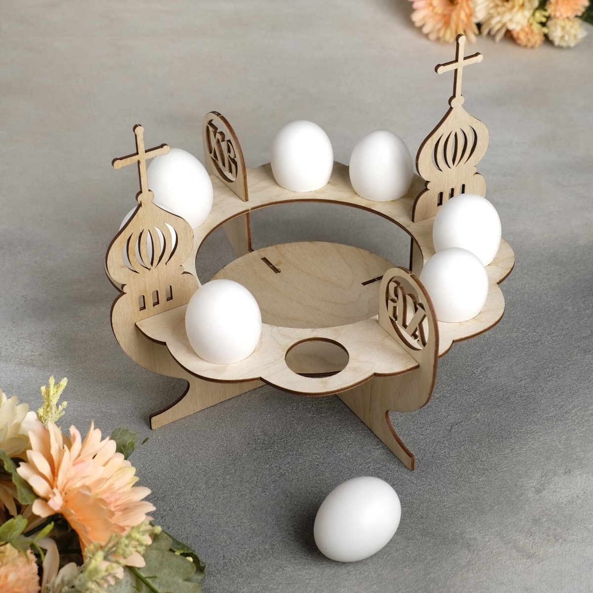 Деревянная подставка для кулича и 8 пасхальных яиц, 26x26x21 см! Создайте праздничное настроение с этой деревянной подставкой, предназначенной для красивой демонстрации пасхального кулича и яиц. Вмещает 8 яиц. Идеальное украшение для пасхального стола. Размер: 26x26x21 см. Традиции, красота и удобство для вашего пасхального стола. Эта подставка для кулича станет центром вашего пасхального стола. Деревянная пасхальная подставка поможет эффектно представить главные символы Пасхи. Подставка для кулича и яиц сочетает в себе функциональность и эстетику. Особенности Материал - дерево: Экологически чистый и безопасный материал. 8 ячеек: Удобное размещение для пасхальных яиц. Центральное место для кулича: Подчеркивает значимость кулича на пасхальном столе. Бежевый цвет: Естественный и теплый оттенок дерева, гармонирующий с любым интерьером. Размер 26x26x21 см: Оптимальный размер для размещения на столе. Сделайте Пасху незабываемой! Эта подставка — это не просто способ представить пасхальные угощения, это часть пасхальной традиции, создающая атмосферу тепла и уюта. Она поможет вам красиво и элегантно представить кулич и яйца, порадовав гостей и близких. Подарите себе и своим близким настоящий праздник!