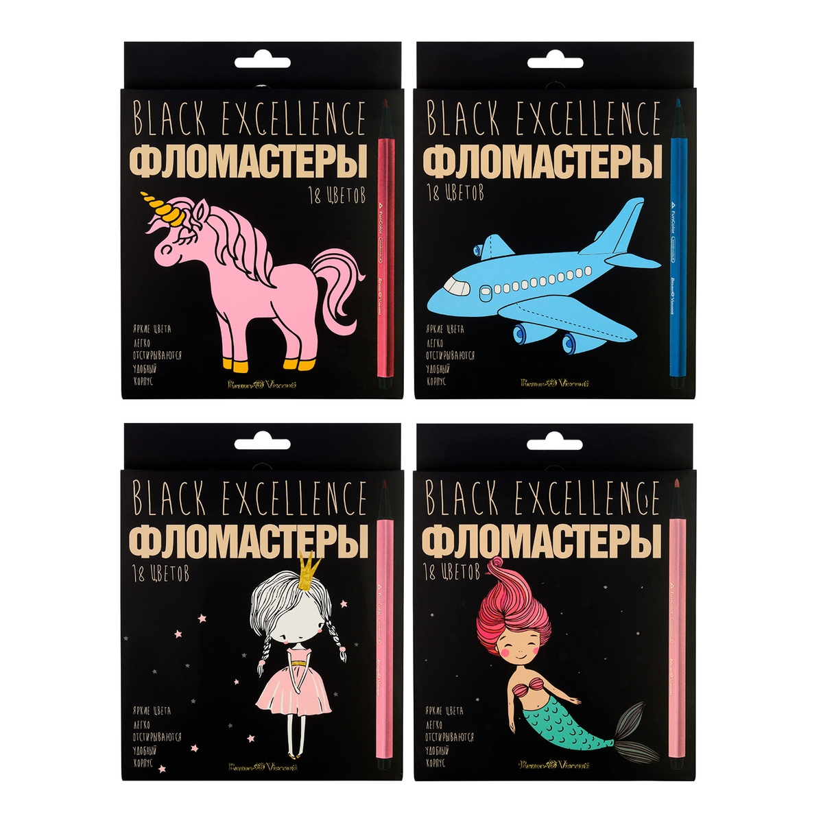 Фломастеры 18цв BLACK EXCELLENCE 4 вида 32-0056