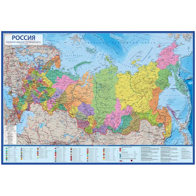 Карта Россия политико-административная 1:4,5млн 1980*1340мм интерактивная КН094