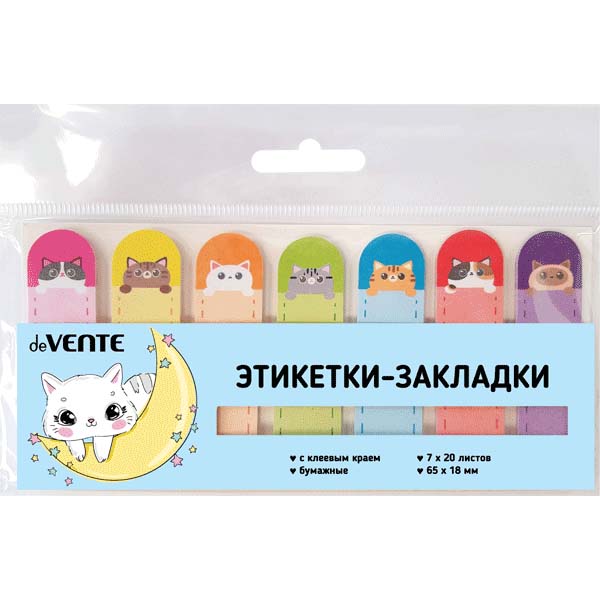 Набор закладок самокл 65x18мм 7x20л Kitty бумажные офсет 80 г/м² 2011210