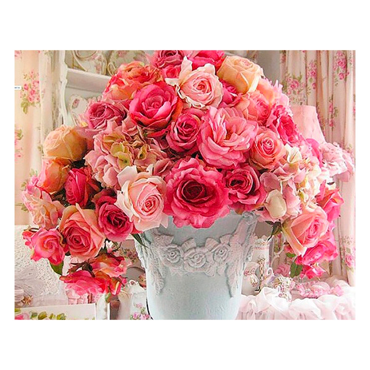 Алмазная мозаика Розовые цветы холст 25х30 см M-11505