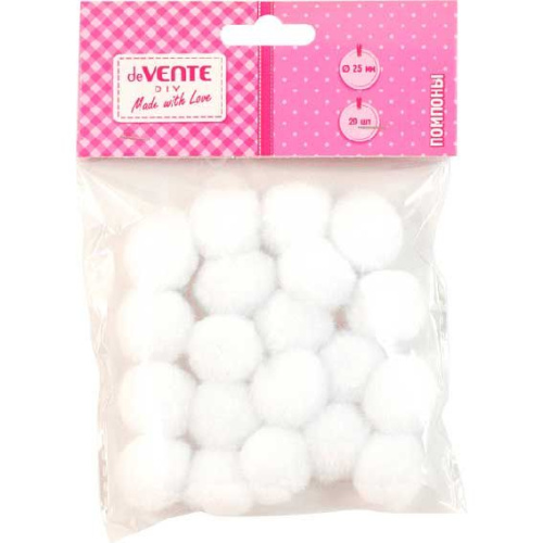 Набор помпонов для творчества 25мм 20шт цвет белый 8000018