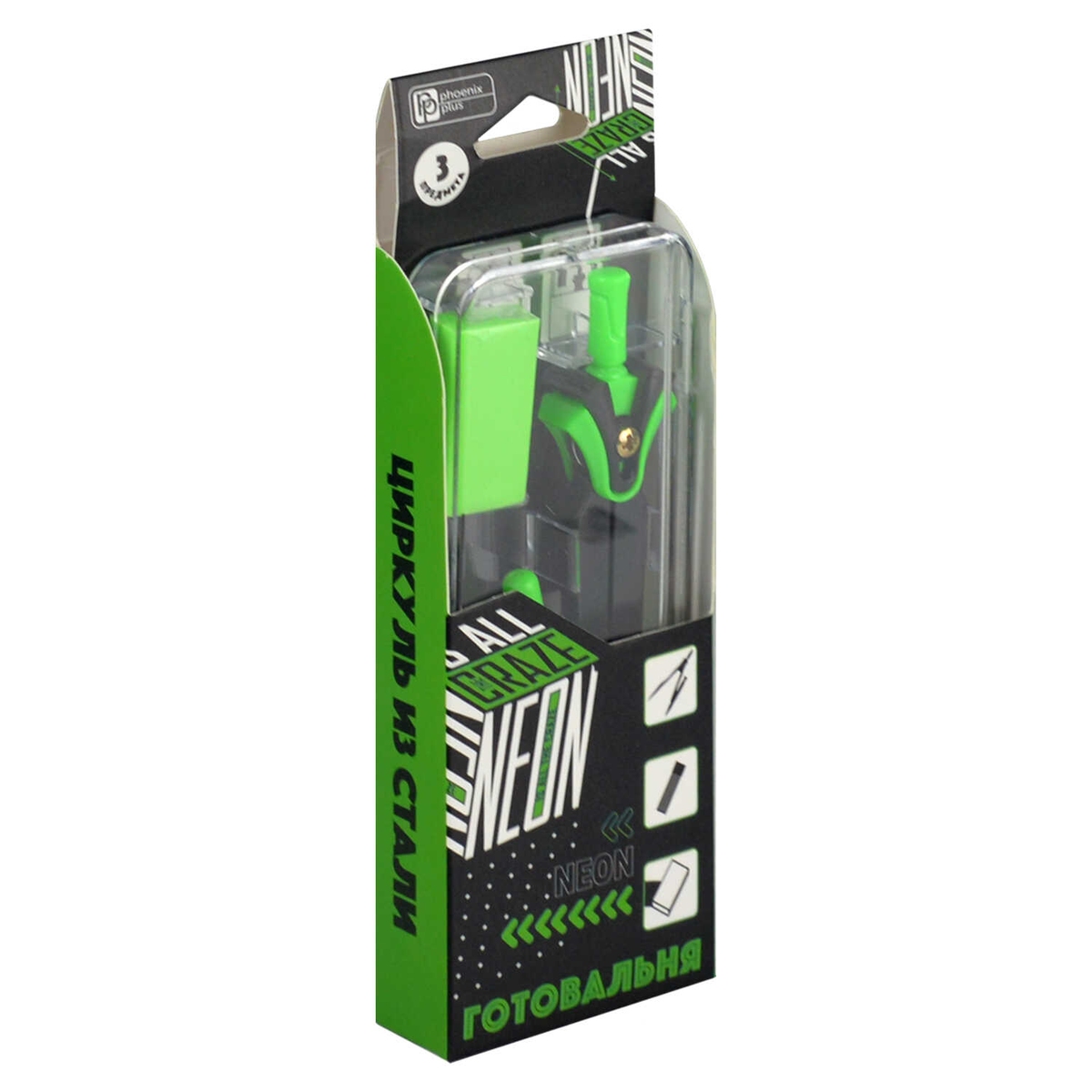 Циркуль в комплекте со сменными грифелями и ластик 62700