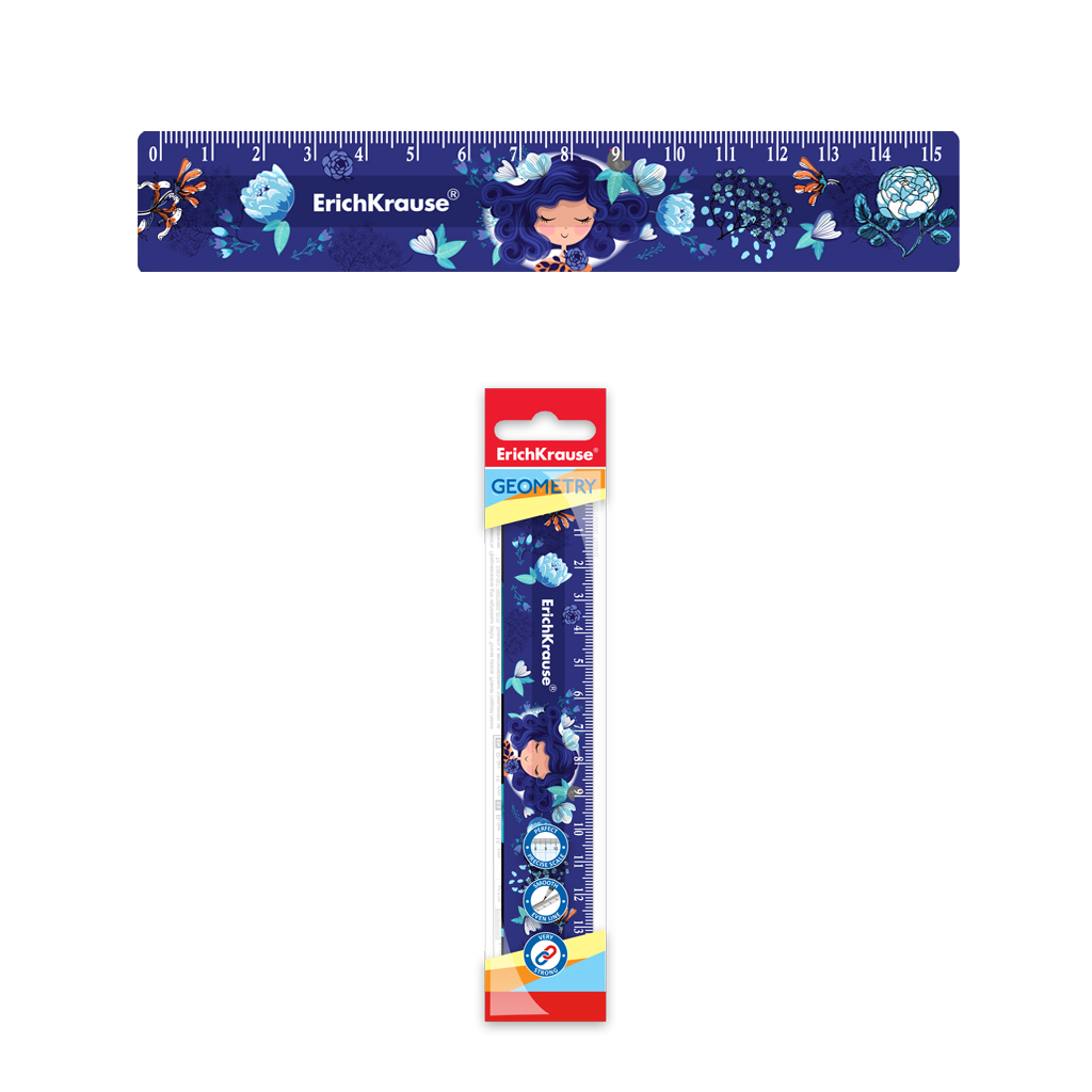 Линейка пластик 15см Bluecur во флоупаке 55476