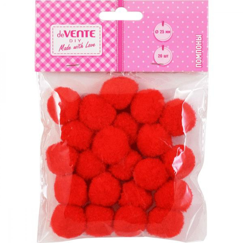 Набор помпонов для творчества 25мм 20 шт цвет красный 8000024