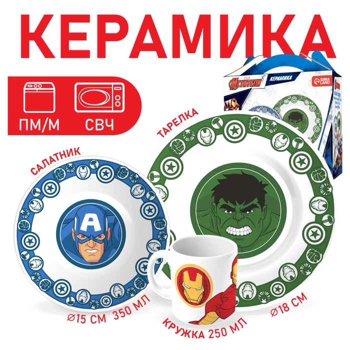 Набор посуды Марвел Мстители кружка 200 мл тарелка 17 см салатник 350 мл 4704363