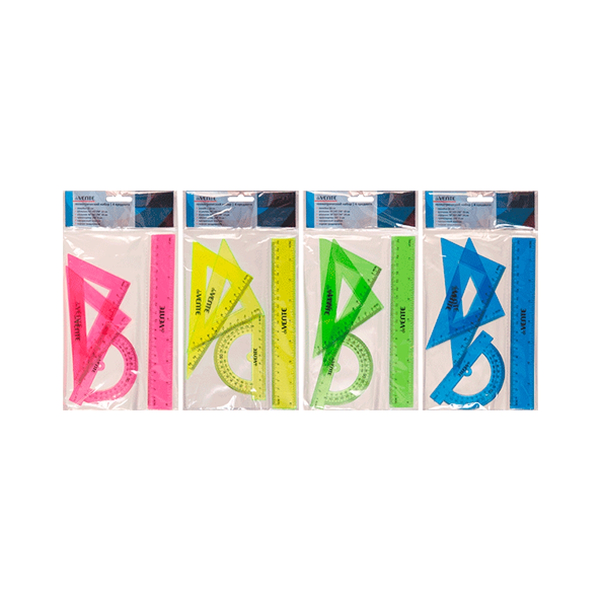 Набор геометрический малый 4 предм линейка 20см 2 угольника транспортир полупрозр 5092303
