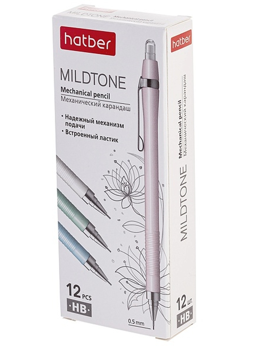 Карандаш механический 0,5мм с ластиком Mildtone 12шт Ассорти MP_060844