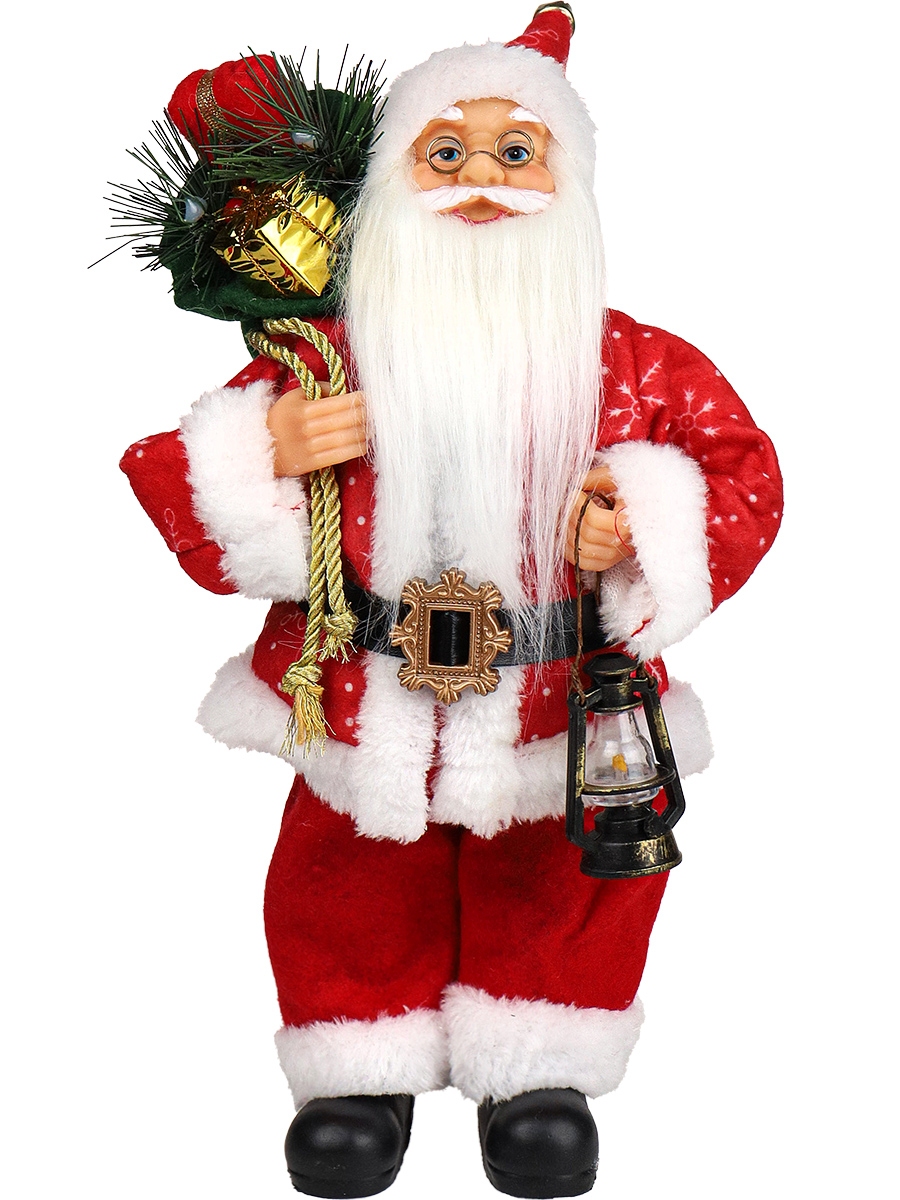 Сувенир Дед Мороз в красной шубе с белым мехом и фонарём 35см НУ-6272