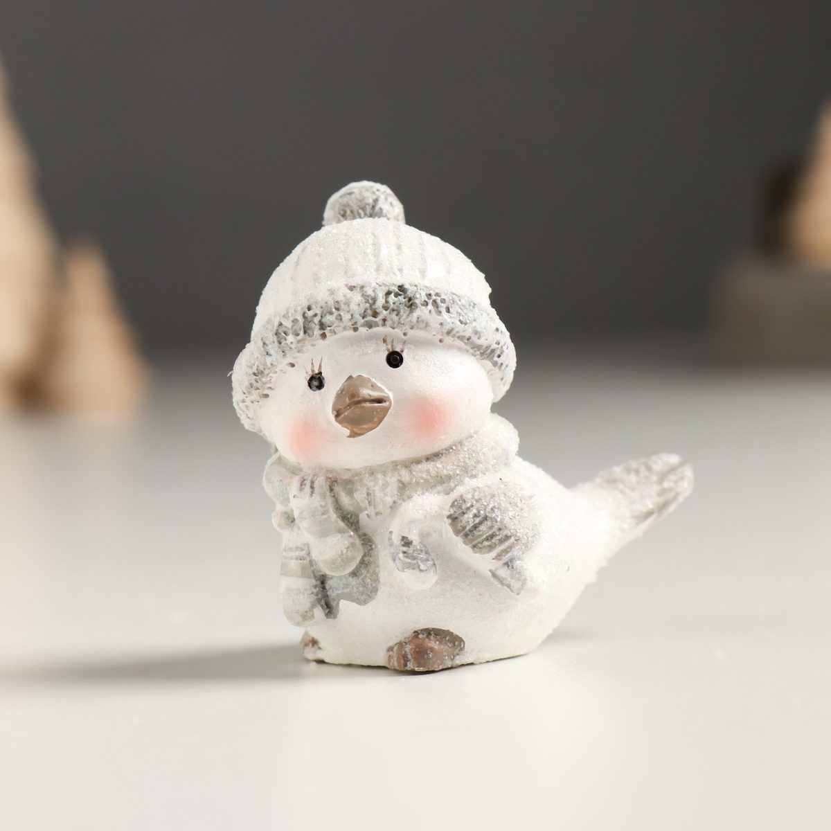 Сувенир полистоун Белый птенчик в шапке и вязанном шарфе серебро МИКС 5х3,5х5см 9498908