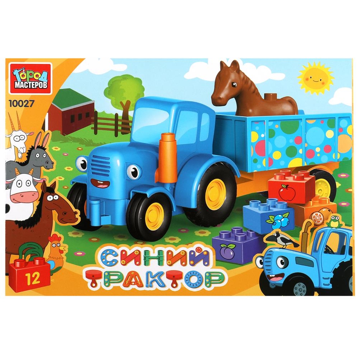 Конструктор Синий ТРАКТОР большие кубики с тележкой 12 дет 10027-GK