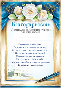 Благодарность родителям за активное участие в жизни класса 0-420