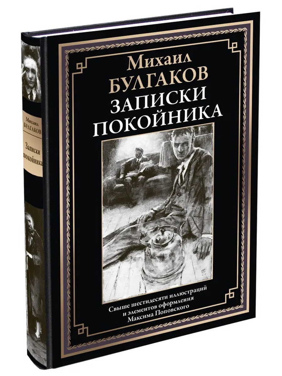 Ознакомиться со всей книгой в электронном виде можно по ссылке на сайте СЗКЭО Подарочное иллюстрированное издание отпечатано на отечественной матовой мелованной бумаге Омела с закладкой ляссе одного цвета с капталом. БМЛ Том 288 Михаил Афанасьевич Булгаков (1891–1940) — врач, драматург и сценарист, всемирно известный писатель и классик мировой литературы. Когда Булгаков ушел из жизни, неоконченным осталось сочинение, над которым он трудился несколько лет, — «Записки покойника». Повествование в романе ведется от лица приятеля автора, Сергея Максудова, последней волей которого было издание его записок о театральном закулисье. Антураж театрального мира того времени и атмосферу литературных поисков передают выразительные и детальные иллюстрации талантливого художника Максима Поповского. Михаил Афанасьевич Булгаков (1891–1940) — врач, драматург и сценарист, всемирно известный писатель и классик мировой литературы. Он родился в Киеве и был старшим ребенком в интеллигентной многодетной семье. Отец писателя был профессором Киевской духовной академии, а мать — учительницей в женской гимназии. Детям прививали любовь к музыке, театру и чтению, поощряли в них тягу к творчеству. Свои первые короткие рассказы Булгаков начал сочинять еще в юности. В 1901 году мальчика приняли в престижную школу — Первую киевскую мужскую гимназию. Еще до ее окончания Михаил потерял отца и был вынужден заниматься репетиторством, чтобы помочь матери обеспечивать семью. Во время Первой мировой войны Булгаков, студент медицинского факультета Киевского университета, дежурил в лазарете Красного Креста. Получив диплом, он уехал во фронтовой госпиталь добровольцем. Долгое время молодой человек работал врачом. Приблизительно в этот период он начал писать рассказы, которые позднее вошли в цикл «Записки юного врача». Его произведения публиковались в журналах и пользовались вниманием как читательской публики, так и состоявшихся литераторов. Булгаковские тексты, остроумные и оригинальные, не оставили равнодушными и театральных деятелей. В 1926 году на театральных подмостках были представлены сразу две его пьесы. Работа в театре увлекла Булгакова. Он проводил много времени во МХАТе, где выступал в качестве актера, режиссера и драматурга. Творчеством писатель был поглощен до самой смерти. Страдая от тяжелого недуга, последние правки к своим текстам он диктовал жене. Когда Булгаков ушел из жизни, неоконченным осталось сочинение, над которым он трудился последние несколько лет. Его текст под названием «Театральный роман» был впервые напечатан в 1965 году, по прошествии двадцати пяти лет со смерти писателя. Однако на первой странице рукописи Булгакова было и другое название этого произведения — «Записки покойника». Тем не менее, издатели, занимавшиеся публикацией романа, выбрали первый вариант. Утверждать, какой из них предпочел бы сам Булгаков, затруднительно, однако заглавие «Записки покойника» было подчеркнуто автором двойной линией и чаще встречалось в записях его третьей жены Елены Булгаковой. Считается, что в основу сюжета романа лег конфликт Булгакова с руководством МХАТа: его пьесы, ввиду цензурных соображений того времени, не допускались до сцены, что повлекло за собой разрыв драматурга с театром. Повествование в романе ведется от лица некоего знакомог