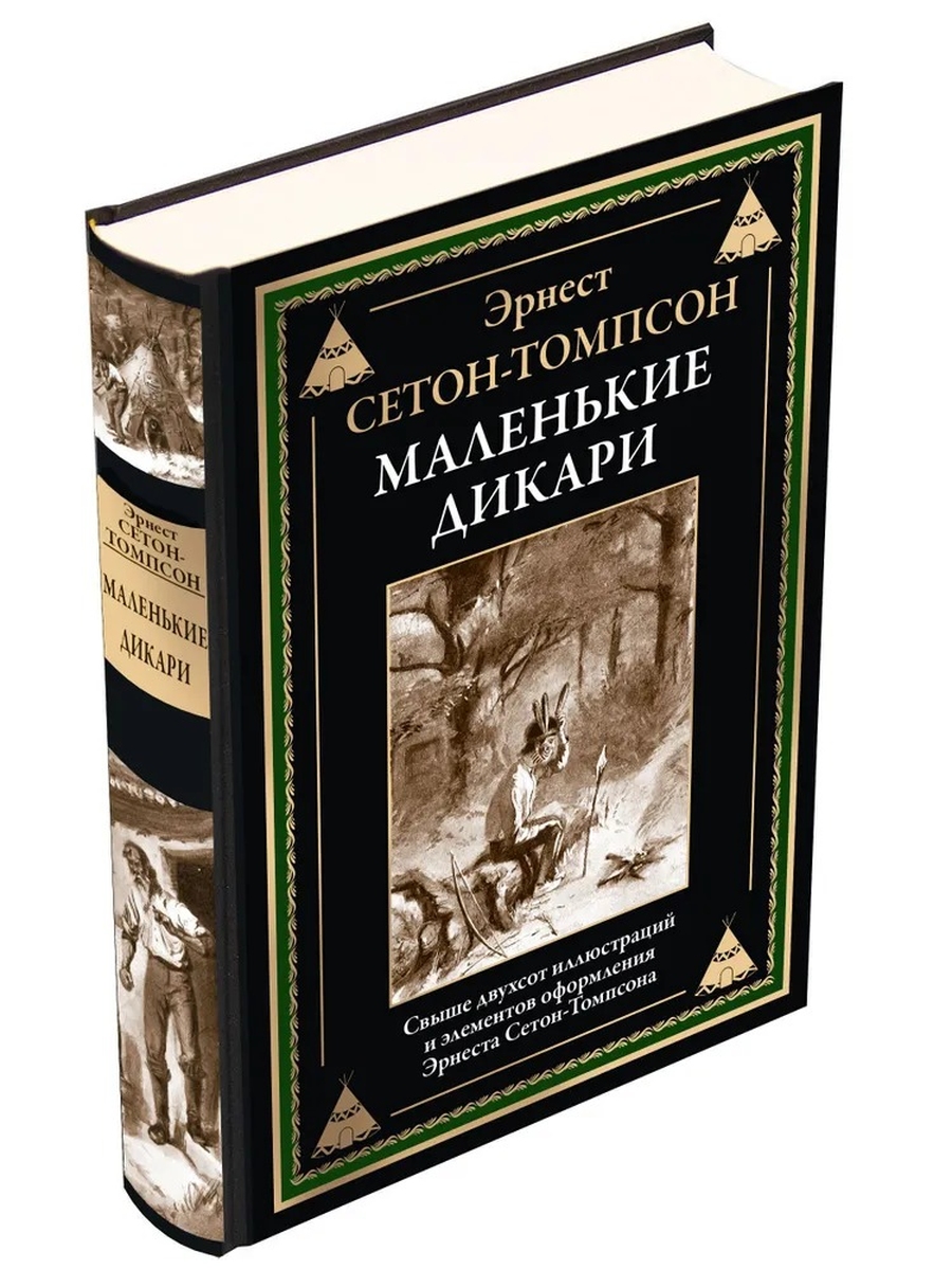 Ознакомиться со всей книгой в электронном виде можно по ссылке на сайте СЗКЭО Подарочное иллюстрированное издание отпечатано на отечественной пигментированной книжно-дизайнерской бумаге кремового цвета с закладкой ляссе одного цвета с капталом. БМЛ Том 284 Эрнест Сетон-Томпсон Маленькие дикари В данном издании читатель может познакомиться с одним из наиболее известных произведений Эрнеста Сетон-Томпсона — повестью «Маленькие дикари». Повесть впервые была опубликована в 1903 году и в наши дни считается классикой детской литературы. Ее сюжет закручивается вокруг друзей-мальчишек, поселившихся в лесу, чтобы познать жизнь настоящих индейцев. Их ждет немало веселых приключений, детских забав и нешуточных проблем. Перевод на русский язык выполнен Любовью Борисовной Хавкиной. Эрнест Сетон-Томпсон (1860–1946) вошел в историю как канадский писатель, художник-натуралист и общественный деятель. Сетон-Томпсон — творческий псевдоним писателя, его настоящее имя — Эрнест Эван Томпсон. Будущий литератор родился в Англии; маленькому Эрнесту исполнилось шесть лет, когда его семья переехала в Канаду. Томпсон с детства питал интерес к природе: мальчик много времени проводил в лесу, наблюдая за его обитателями и делая зарисовки растений и животных. Это детское увлечение оказало влияние на творческий путь, который Томпсон избрал в дальнейшем. Эрнест получил художественное образование: сначала окончил Школу искусств Онтарио, а несколько лет спустя стал студентом Академии Жюлиана в Париже — это учебное заведение славилось мастерством преподавших в нем художников и соперничало с лучшими художественными школами того времени. Во время обучения юноша познакомился со многими выдающимися живописцами и впоследствии стал членом Канадской Королевской академии искусств. Приблизительно в этот период Томпсон начал публиковать свои первые рассказы, которые сам же и иллюстрировал. В своих произведениях Эрнест писал о животных, о дикой природе, о взаимодействии человека с окружающим миром. Писателя глубоко волновал вопрос губительного воздействия людей на окружающую среду, в частности истребление ими диких животных. Он организовывал молодежные движения, направленные на обучение детей выживанию в походных условиях и на воспитание в них бережного отношения к животным и растениям. Томпсон не любил подолгу оставаться в больших городах: он часто устраивал вылазки в леса и прерии, посвящал много времени изучению североамериканских животных. Литературное наследие Томпсона разнообразно: это не только научные труды, но также рассказы и повести для детей и взрослых. В данном издании читатель может познакомиться с одним из наиболее известных произведений Эрнеста Сетон-Томпсона — повестью «Маленькие дикари». Повесть впервые была опубликована в 1903 году и в наши дни считается классикой детской литературы. Ее сюжет закручивается вокруг друзей-мальчишек, поселившихся в лесу, чтобы познать жизнь настоящих индейцев. Их ждет немало веселых приключений, детских забав и нешуточных проблем. Главному герою, тихому, почти робкому мальчику, предстоит пройти извилистый путь и стать храбрым, уверенным в себе юношей. Иллюстрации, выполненные рукой самого писателя, отлично раскрывают характеры персонажей и позволяют взглянуть на лесные пейзажи глазами автора.