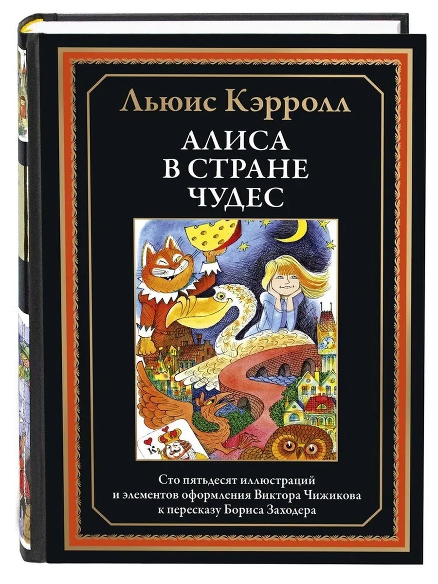 Текст знаменитой повести Льюис Кэрролла «Алиса в Стране чудес» дан в авторском пересказе Бориса Владимировича Заходера. Издание начинается с предисловия переводчика. Книга великолепно иллюстрирована цветными рисунками и монохромными заставками народного художника РФ Виктора Александровича Чижикова. В конце книги приведены черно-белые варианты его рисунков к этой повести, которые были напечатаны в журнале «Пионер» в 1971–1972 гг. Вряд ли стоит представлять читателям Льюиса Кэрролла. Его история о приключениях Алисы переведена более чем на сто языков мира. Существуют даже специальные исследования об особенностях перевода его книг на национальные языки, ведь это дело очень непростое. Текст Кэрролла насыщен не только остротами, каламбурами и словесными парадоксами, но и стихотворными пародиями на известные в его времена вирши. Поэтому дословный перевод «Алисы» будет непонятен или перегружен комментариями, а слишком вольный рискует далеко уйти от оригинала и утратить английский национальный колорит. Попытки «русифицировать» Кэрролла были. В 1879 г. был напечатан анонимный пересказ - «Соня в царстве дива». В нем все английские реалии были заменены русскими. К примеру Безумный шляпник превратился в Илюшку-лжеца. В переводе Набокова, опубликованном в 1923 г., Алиса стала Аней, а Чеширский кот - Масленичным. На этом фоне классическим и наиболее близким к оригиналу является перевод Демуровой. Недаром именно он был опубликован в 1977 r. в академической серии «Литературные памятники». И все же, как отмечала сама Демурова, «невозможно точно передать на другом языке понятия и реалии, в этом другом языке не существующие». Поэтому каждый перевод текста Кэрролла имеет свои достоинства и недостатки. У опубликованного в этой книге перевода замечательного писателя и поэта Бориса Владимировича Заходера таких достоинств много. Он сделал книгу Кэрролла понятной для школьников, насытив ее русскоязычными каламбурами. Наплакав целое море слез, Алиса у него попадает в плачевное положение, а на ее реплику о желании приятно провести время Шляпа (Шляпник) отвечает: «Время не проведешь». И таких каламбуров у Заходера много; благодаря им сохраняется затейливо-причудливый дух сказки Кэрролла. Перевод Заходера, публиковавшийся в 1971-1972 г. в журнале «Пионер», был проиллюстрирован великолепными рисунками Виктора Александровича Чижикова. В этом издании они даны в цвете. Искрометный талант Чижикова придает истории Кэрролла дополнительные краски. Алиса у него и почти все прочие персонажи сказки, в отличие от классических рисунков Тенниела, часто улыбаются. Чижиков постоянно подыгрывает Заходеру. Например, он изображает Рыбного Деликатеса в виде осетра с пустой банкой из-под икры на голове. На его рисунках в расписании уроков черчение благодаря зачеркнутой букве превращается в верчение, а история - в истерию. Приятно, когда два таланта работают над книгой вместе. Веселого чтения!