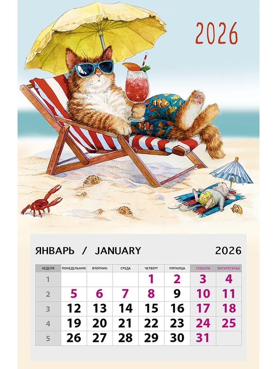 0611.132 Календарь магнитный Кот 2026