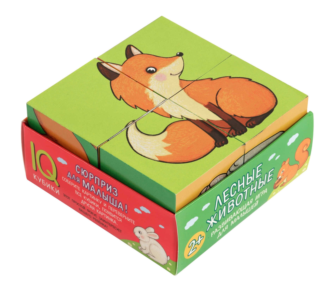 "Умные кубики. Лесные животные" - разработаны специально для развития детей от 2 до 3 лет. Это лучшая игра для развития вашего малыша. Углы кубиков во время игры активизируют речевые рецепторы на ладошках. Никаких мелких элементов рисунка, которые ребёнок этого возраста ещё не способен воспринимать. Картинки яркие, а фон равномерный и контрастный. Все образы простые и понятные, их легко узнать и назвать. Рисунок собирается по специальной методике с опорой на картинки-основы. Малышам 2-3 лет трудно скоординированно действовать двумя руками. Поэтому кубики помогает удержать прочный поддончик. Такая игра не надоедает, малыш видит результат и занимается с удовольствием. Именно с этой игры лучше всего начать обучать ребёнка. Она тренирует мелкую моторику, координирует движения рук и расширяет словарный запас. Эти кубики помогут развить комбинаторные и креативные способности и восприятие целостного образа. Ребенок легко научится устанавливать связь между частью и целым, познакомится с окружающим миром. А ещё, маленькое чудо в подарок! Сложите картинку и переверните все кубики. Смотрите на новую картинку! Что на ней? Всё продумано: от поддончика до иллюстраций. Играйте с пользой, занимайтесь с удовольствием. + Карточки с картинками-образцами. + Изображения специально для 2-3 лет. + Специальный поддон для игры и хранения. + Игра "Переверни и назови".