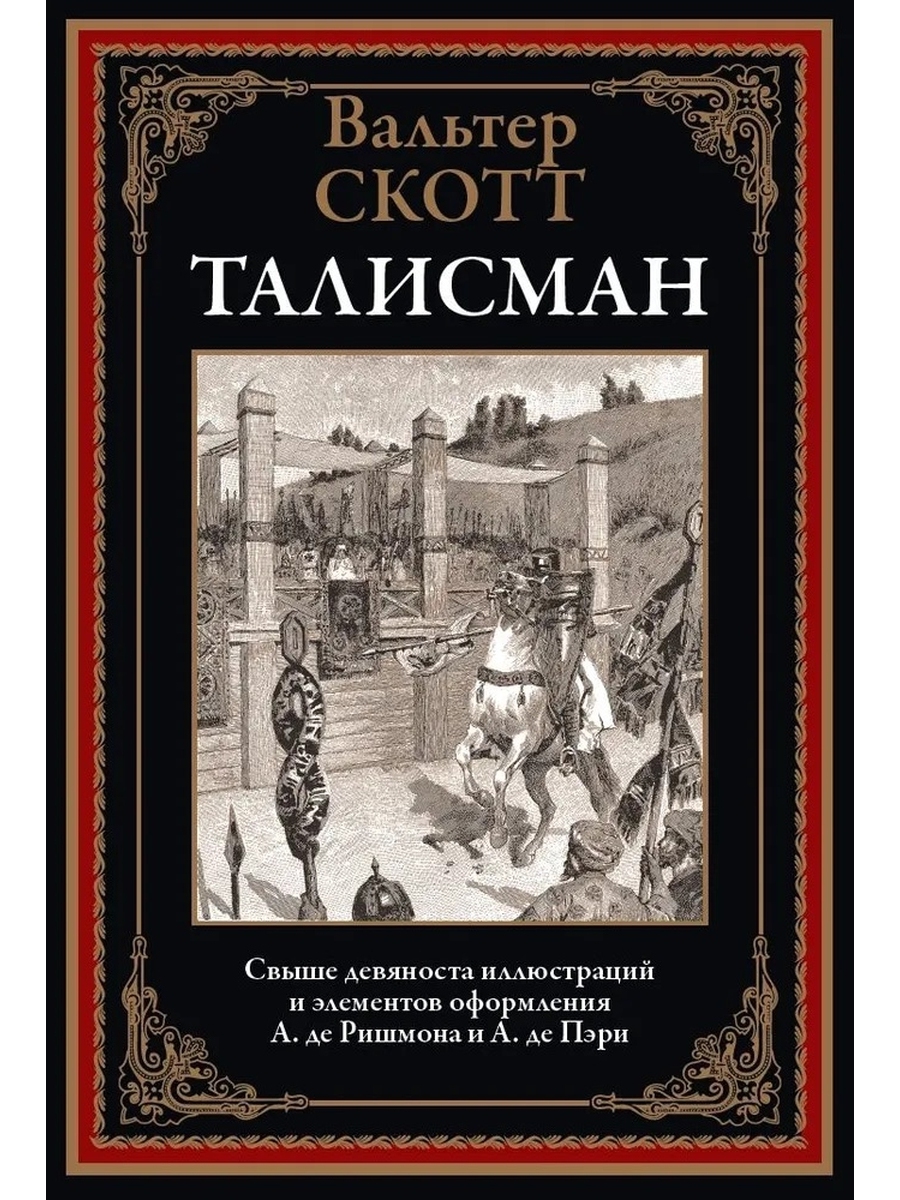 Ознакомиться со всей книгой в электронном виде можно по ссылке на сайте СЗКЭО Подарочное иллюстрированное издание отпечатано на отечественной пигментированной пухлой книжно-дизайнерской бумаге кремового цвета с закладкой ляссе одного цвета с капталом. Вальтер Скотт Талисман Свыше девяноста иллюстраций и элементов оформления А. де Ришмона и А. де Пери БМЛ Том 329 В данном издании представлен исторический роман Вальтера Скотта (1771–1832) «Талисман, или Ричард Львиное Сердце в Палестине». В наши дни он по праву считается одним из лучших произведений этого знаменитого шотландского писателя. Сюжет романа повествует о временах легендарных крестовых походов. Рыцарю Кеннету, оказавшемуся на рубеже западной и восточной культур, необходимо расстроить козни заговорщиков, которые они плетут против английского короля. Текст проиллюстрирован французскими художниками XIX века Альфредом де Ришмоном и А. де Пэри. Вальтер Скотт (1771–1832) — знаменитый шотландский писатель, поэт и переводчик. Он родился в Эдинбурге, в семье юриста Вальтера Скотта и его жены Энн Резерфорд, дочери профессора Эдинбургского университета. В раннем детстве мальчик тяжело заболел, и хотя благодаря стараниям родных ему удалось пойти на поправку, писатель до конца жизни хромал и был слаб здоровьем. В кругу семьи Вальтера охотно знакомили с шотландскими сказками и легендами; ему часто рассказывали об удивительных событиях из шотландской истории и читали стихи. Так у Вальтера развился интерес к культуре, фольклору и истории Шотландии, который и определил направление его творчества в будущем. Сначала Скотт намеревался пойти по стопам отца и стать адвокатом. В 1792 году юноша окончил юридический факультет и в течение нескольких лет совмещал адвокатскую практику с общественной деятельностью и литературным трудом. Еще со времен учебы Скотт занимался переводами художественных произведений с немецкого языка, а затем увлекся сочинением стихов и собиранием народных сказок, баллад и легенд Шотландии, чему способствовали его рабочие поездки по стране. За написание прозаических текстов, в частности исторических романов, Скотт принялся уже в зрелом возрасте. В своих романах он стремился в точности передать особенности описываемой эпохи, подробнейшим образом прописать персонажей и детально изобразить антураж. Одной из отличительных черт творчества Скотта также стали элементы фольклора, неизменно привносимые автором в свои тексты. Первые такие произведения писатель публиковал под псевдонимом, сохраняя благодаря этому анонимность вплоть до 1827 года. Позднее их прозвали «романами Уэверли» –– по названию первого прозаического произведения Скотта, опубликованного в 1814 году.