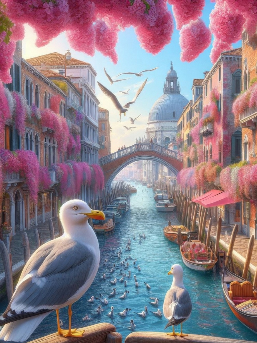 Алмазная мозаика Чайки Венеции 40х50 см с подр с полн заполн 30 цв НД-8937