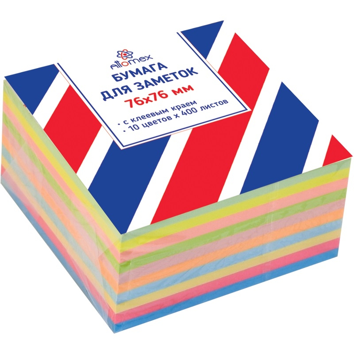 Клейкая бумага для заметок 76x76мм 400л офсет 75 (70) г/м² 6 неон и 4 пастель цв 2010422
