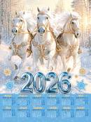 0-02-5099 Календарь А2 Тройка лошадей 2026