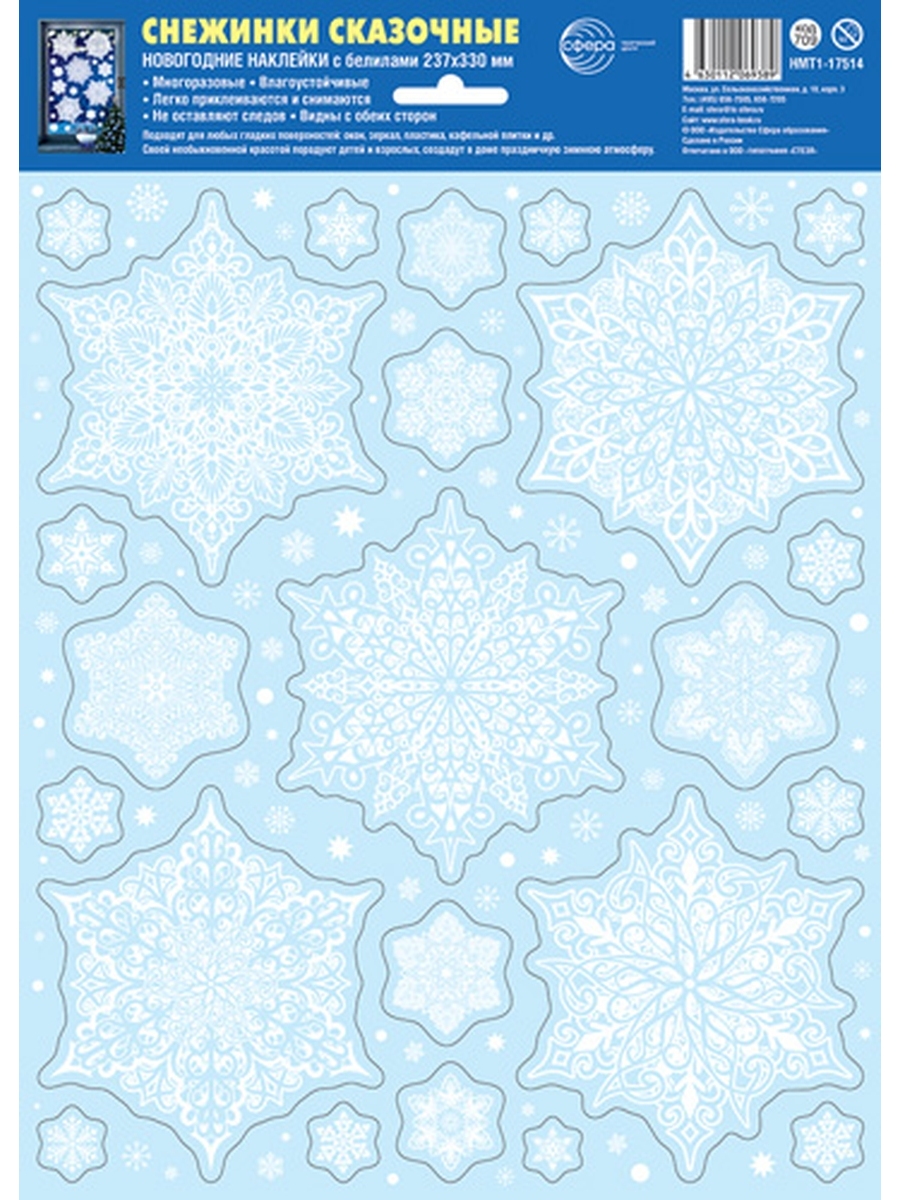 Оформительская наклейка А4 Снежинки сказочные НМТ1-17514