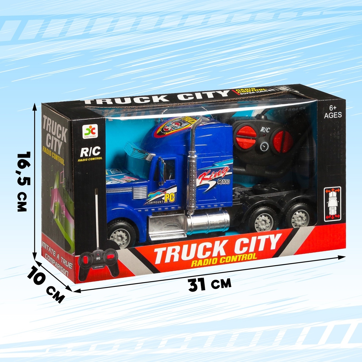 Грузовик р/у Тягач работает от батареек синий 7985996