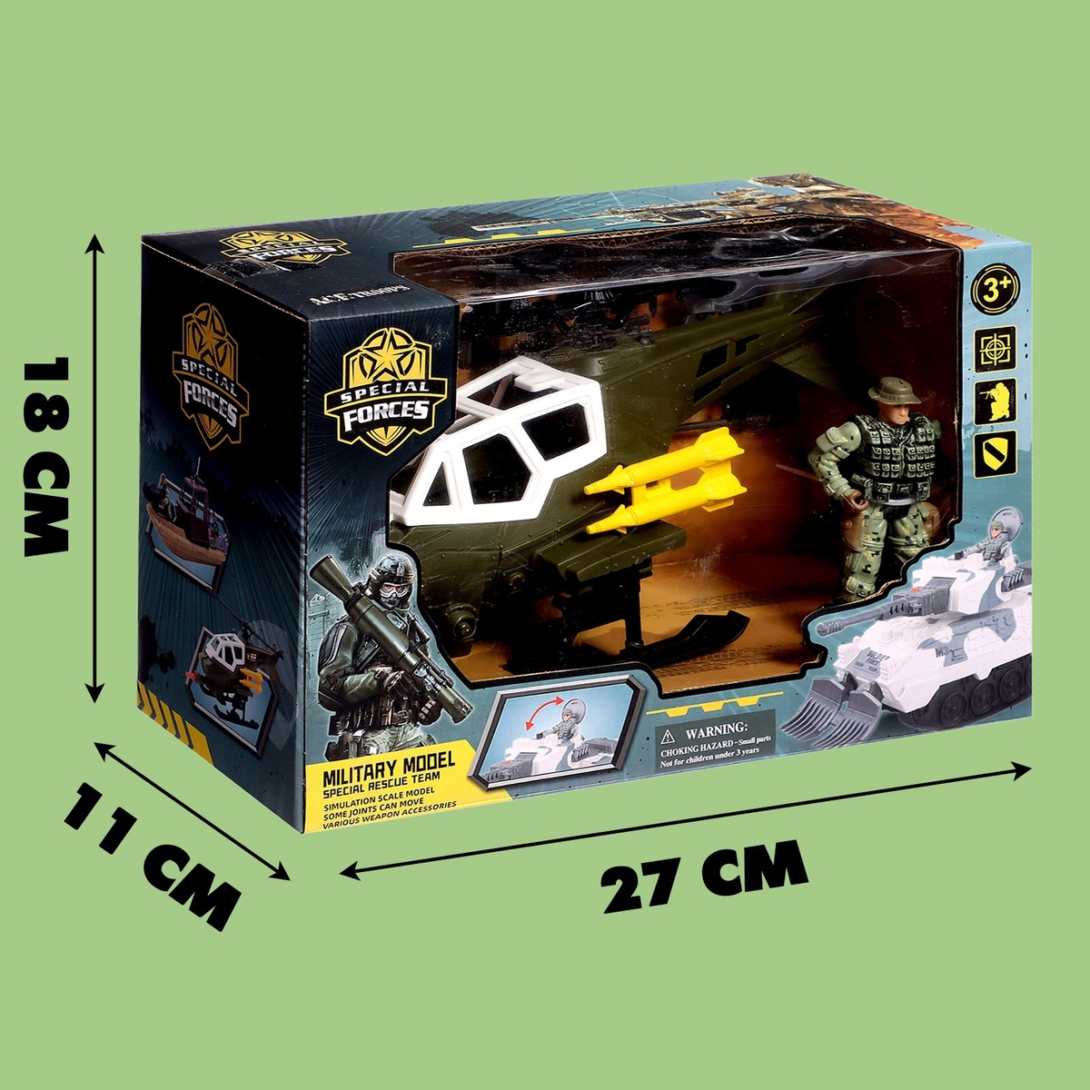 Набор «Пилот вертолёта» — отличный выбор для юных исследователей неба. В комплекте всё необходимое для увлекательных приключений в мире авиации. Особенности В наборе 16 деталей, включая фигурку пилота и мини-вертолёт. Игрушки изготовлены из безопасного пластика. Подходит для детей от 3 лет. Детали имеют продуманный дизайн и удобный размер для детских рук. Комплект можно дополнять другими игрушками военной или авиационной тематики. Развитие через игру Игра с набором помогает: Развивать воображение и творческое мышление. Улучшать мелкую моторику при работе с деталями. Формировать интерес к профессии и технике. Набор станет идеальным подарком для любителей военной техники и полётов. Играйте, создавайте сценарии и исследуйте мир авиации вместе! Дополнительно Размеры: Вертолет: 27 × 9 × 14 см. Снаряд (3 шт.): 0,5 × 0,5 × 7 см. Мишень (2 шт.): 5,5 × 0,2 × 7,5 см. Солдат: 5 × 2,5 × 10 см. 1 автомат: 6,5 × 0,2 × 2 см. 2 автомат: 3 × 0,2 × 2,5 см. Лопата: 1,5 × 1 × 5,5 см. Бинокль: 2 × 1 × 1,5 см. Граната: 0,5 × 0,5 × 1 см. Открывается кабина вертолёта. Для осущетсвления стрельбы вертолёта необходимо нажать на кнопку.