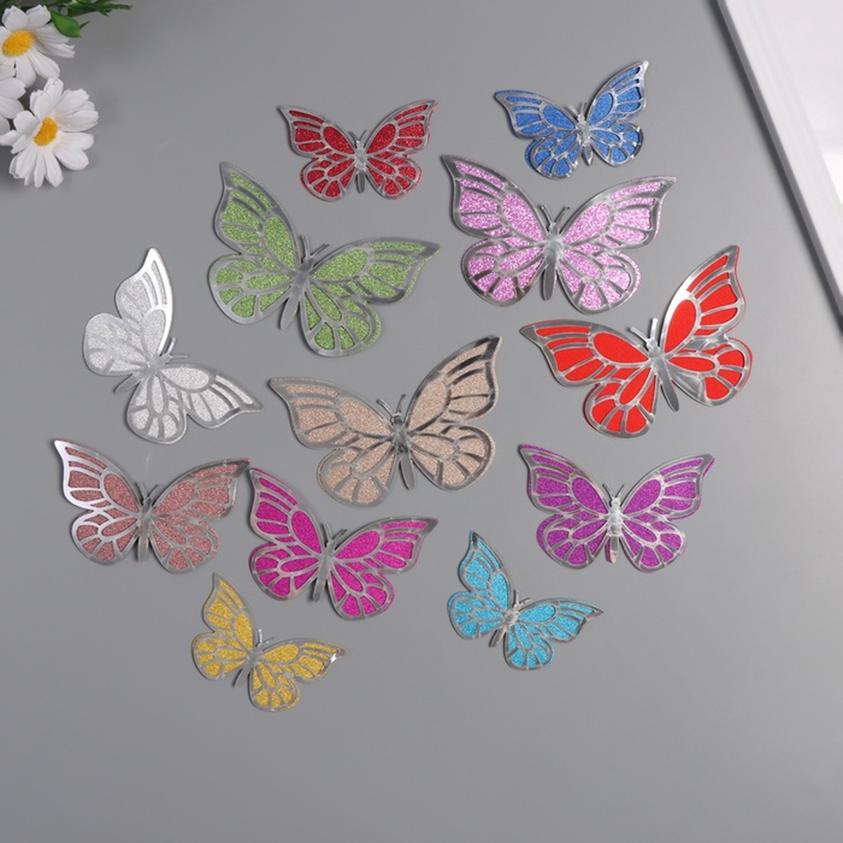 Наклейки бумага пластик Бабочки серебро 12 шт 10524268