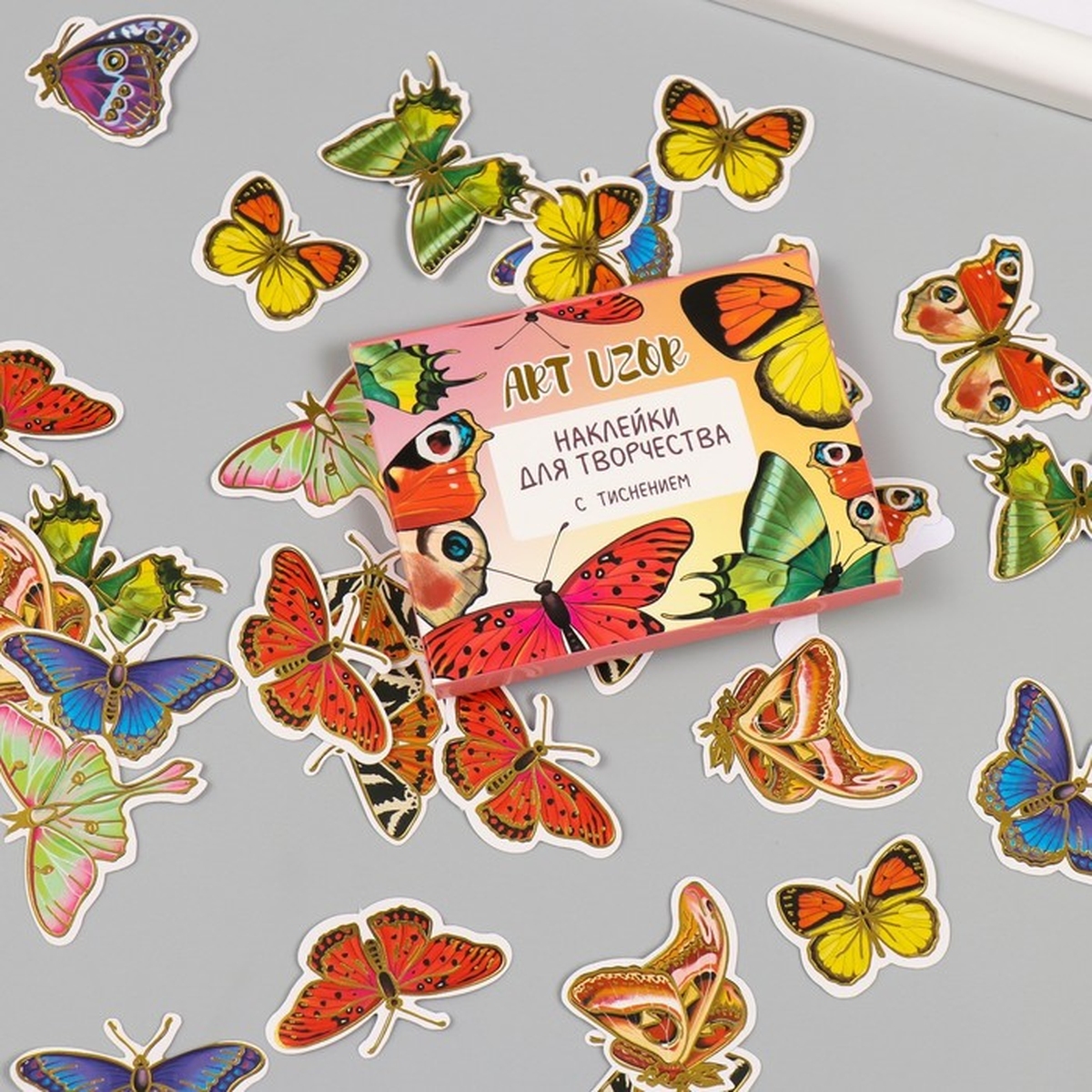 Набор наклеек Мир бабочек тиснение золото 48 шт 9х7х0,8 9494199