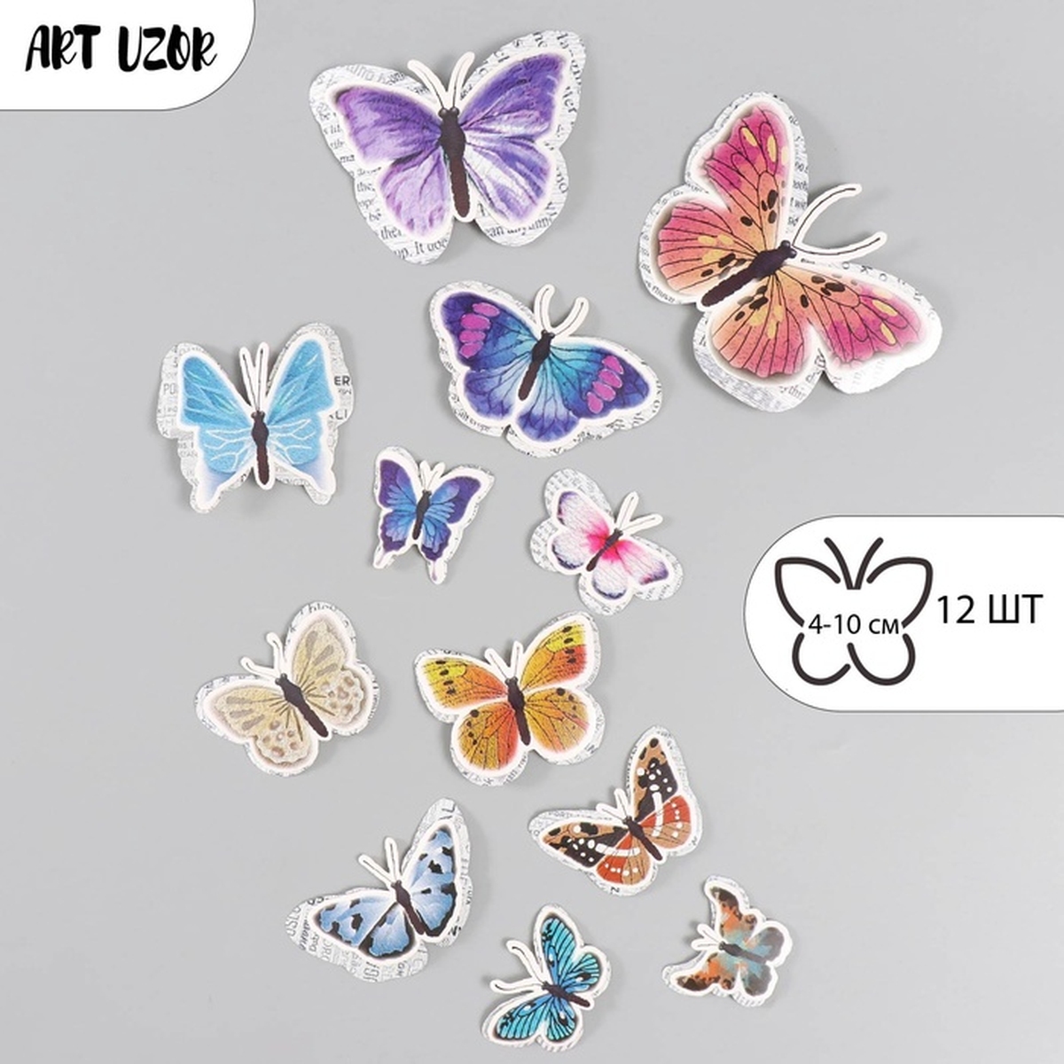 Набор наклеек Бабочки Газетные 12 шт 4-10 см 9668917