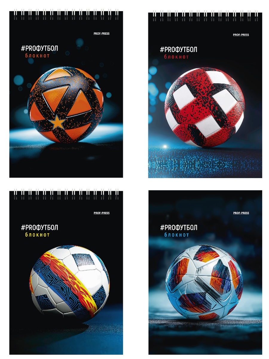 Блокнот 40л А6 РАЗНЫЕ ФУТБОЛЬНЫЕ МЯЧИ-5 асс Спираль Б40-7023