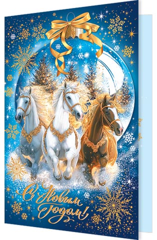 2-46-5876 Открытка С Новым годом Тройка лошадей