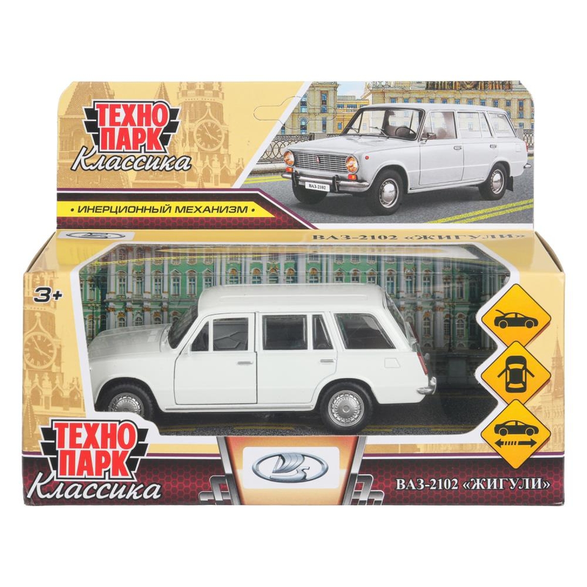 Модель Маш Ваз 2102 металл 12 см двери багаж инерц белый 2102-12-WH-WOD