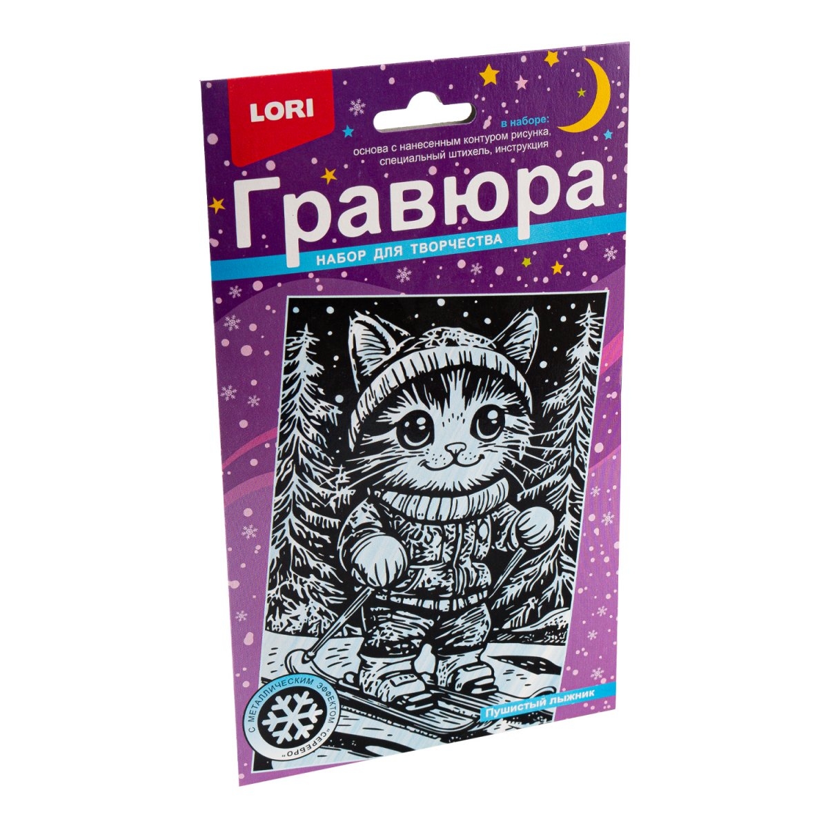 Гравюра малая с эф серебра новогодняя Пушистый лыжник Гр-931