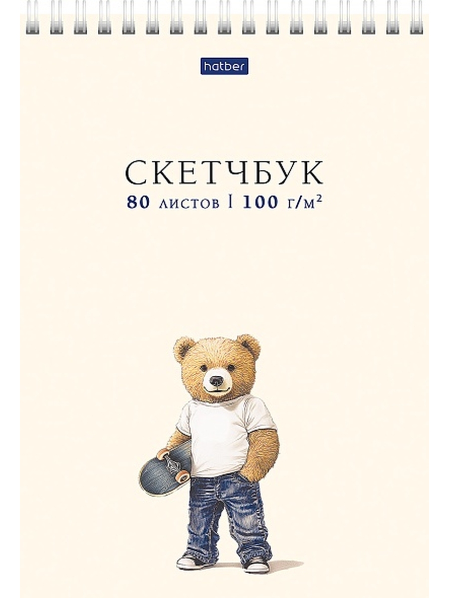 Скетчбук 80л А5 100г/кв.м без линовки твердая подложка Спираль Модный мишка 80Б5Aгр_34850