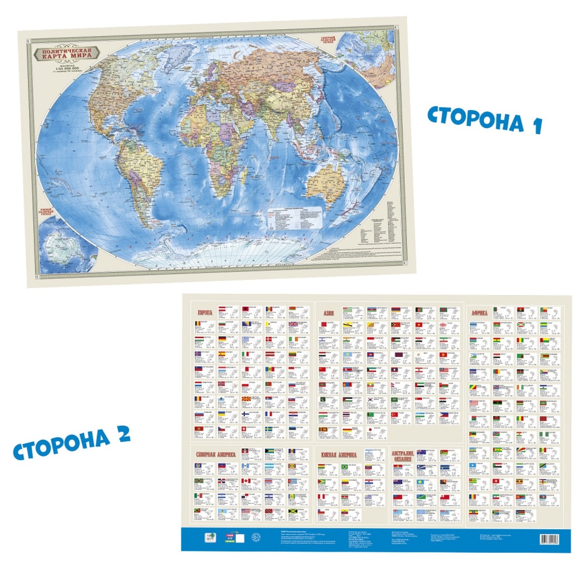 Карта МИР полит с инфографикой ДВУХСТОР 1:55 млн 58х38 см ЛАМ с европодвесом