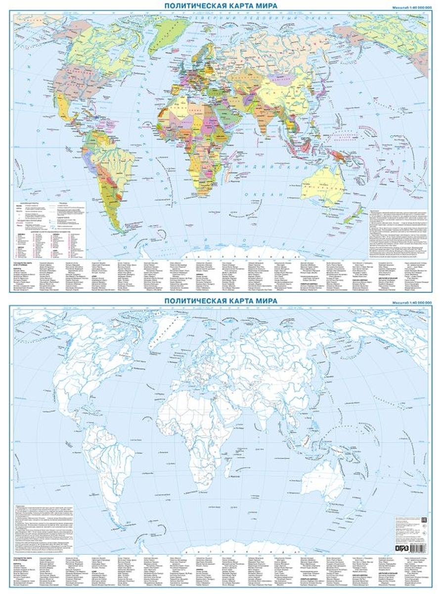 Превратите ваше пространство в источник знаний. Представляем вам двустороннюю карту формата 88х58 см на плотном картоне. Политическая карта мира и контурная карта на обороте масштаба 1:40 000 000 не просто украсит ваш интерьер, но и станет незаменимым помощником в изучении географии. С её помощью вы сможете легко ориентироваться во множестве государств и их столиц! Наша карта использует богатую цветовую палитру, чтобы выделить каждую страну, делая изучение географии не только увлекательным, но и визуально привлекательным. Полный список государств и столиц по континентам: Все данные собраны в одном месте, легко доступны и структурированы. Идеально подходит для школьников, стремящихся повысить свои знания о политической карте мира. Карта может стать элементом декора вашего дома или офиса. По данным международных исследований, визуальные учебные материалы повышают усваиваемость информации на 70%. Наша Политическая карта мира - это источник знаний, который расширяет горизонты! На ламинированной стороне - контурная карта - все границы, столицы и основные объекты можно подписывать и раскрашивать стирающимися маркерами, что делает процесс познания интерактивным и увлекательным. Наша двусторонняя карта - это не просто учебные пособия, а настоящие источники вдохновения, семейного досуга и интеллектуального развития. Подарите себе и близким возможность познавать мир каждый день!