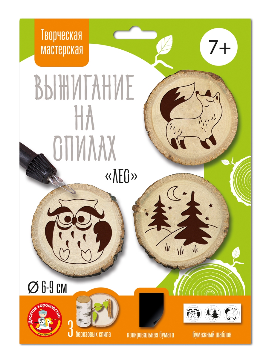 Выжигание на спилах Лес Лисичка Сова Елки малые 04804
